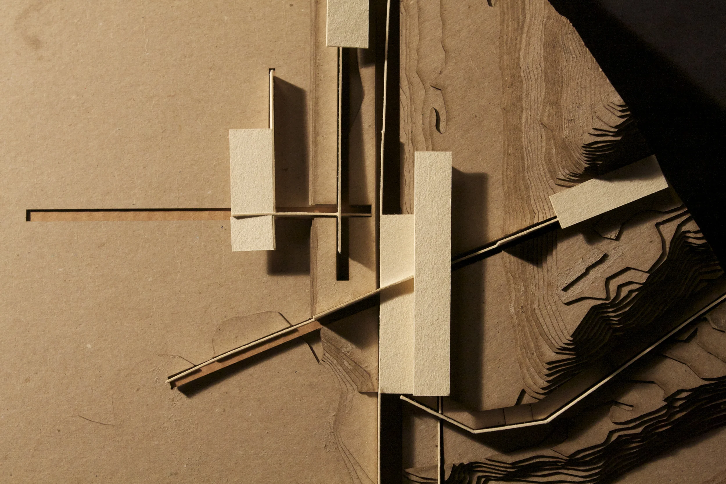 Inspired by ink dissipation, the project reflects three experiences: anticipation, convergence and dissipation. One approaches the project through a compressed path that wraps around the hill, anticipating what is to come. He or she then reaches the center of the project, converging with the site. Finally he or she is presented with the possibilities of multiple site-specific classrooms, allowing them to dissipate and explore different natural aspects of the Duck Hollow site. The classrooms are each composed of wall units housing all necessary amenities, opening up the classroom space and allowing the surrounding environment to take priority within the learning spaces.